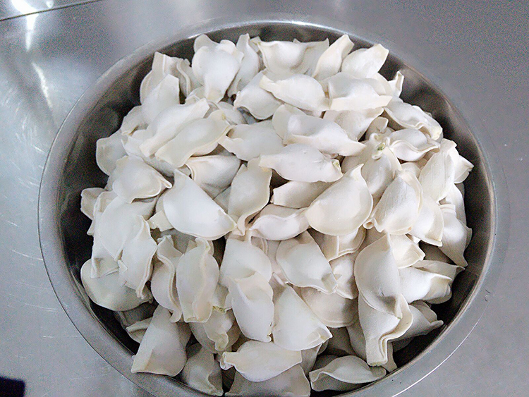 雷师傅为员工下饺子,不同馅的饺子个个饱满